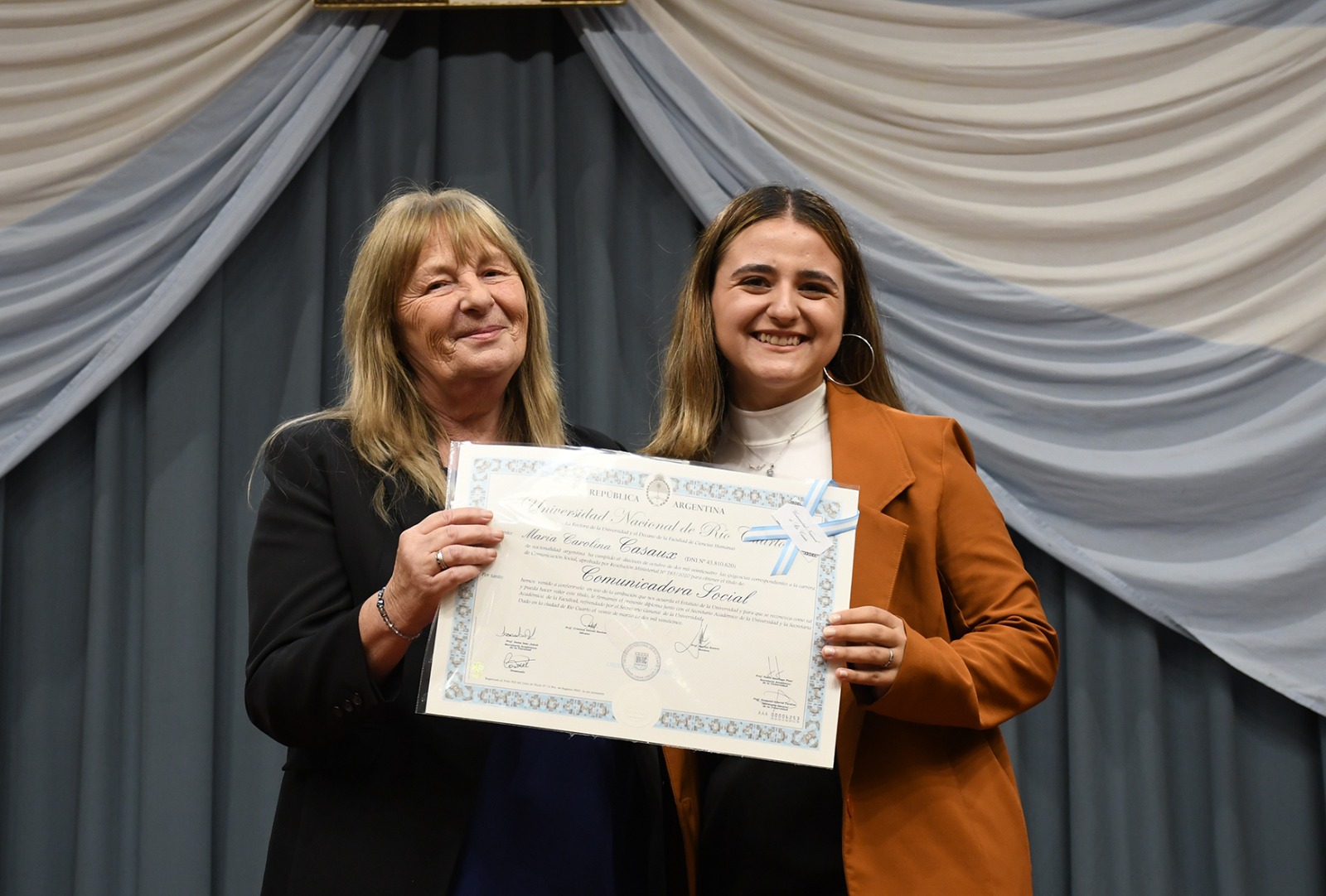 El viernes 11 de abril se realizó la 308° Colación de Grado en el Aula Mayor de la Universidad Nacional de Río Cuarto. En la ceremonia realizada por la tarde, 37 nuevos/as profesionales de la Facultad de Ciencias Humanas recibieron su título.