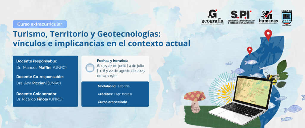 Destinatarios:Â Estudiantes de posgrado, investigadores y profesionales interesados en las aplicaciones de las geotecnologÃas en el campo del turismo; graduados en GeografÃa, Ciencias Humanas, Sociales o afines, graduados de otras disciplinas interesados en el turismo desde diferentes perspectivas.