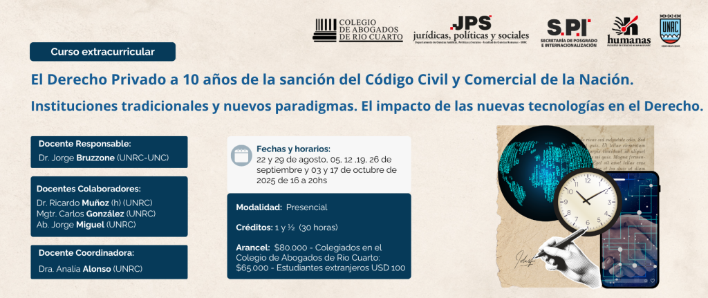El Derecho Privado a 10 años de la sanción del Código Civil y Comercial de la Nación. Instituciones tradicionales y nuevos paradigmas. El impacto de las nuevas tecnologÃas en el Derecho.